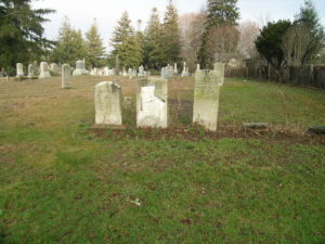 As a note of interest, the graves in the old section are all oriented so that the engraved side of the headstones faces north with the footstones located to the south toward South Cove. In other words, the bodies are buried with their heads oriented to the north toward College Street with the feet toward South Cove. Frank, Phyllis and Rose, on the other hand, are buried the opposite way, at least as indicated by the headstones. The engraved sides of their headstones face South Cove while their footstones are on the College Street side of the headstones. This suggests that the three slaves are buried with their heads to the south, in the opposite orientation of all of the others buried in the old section. Whether this was done because they were slaves can only be speculated upon.