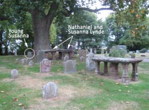 As has been memorialized on his tablet (right in photo below), Nathaniel and Susanna donated the use of their home and 13 acres of land to the Saybrook Collegiate School – now Yale University – and became the school’s first treasurer. Susanna pre-deceased him by 20 years at the age of 45 years (right). Nathaniel died at the age of 70 years of age.